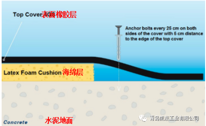 表面ゴムが薄いので、ゴムの品質要求は高いです。 普通に4~8mmのゴム表層を使用することをお勧め、高密度ナイロンメッシュクロスをゴムの中間層に挟み込んで、強度を高め、踏みつけ時の変形を減らします。 ゴムの強度は 6 MPaを下回ることはできず、輸出品質は 10 MPa に達することさえあります。 なお、ゴム表面が薄いほど、快適度が良い、ゴムの表面厚さが薄いほど強度に対する要求が高くなり、価格も高くなるため、バランスを取る必要があります。ベッドの快適度、耐用年数や価格を考慮して初めて、最もリーズナブルな購入プランを立てることができます。